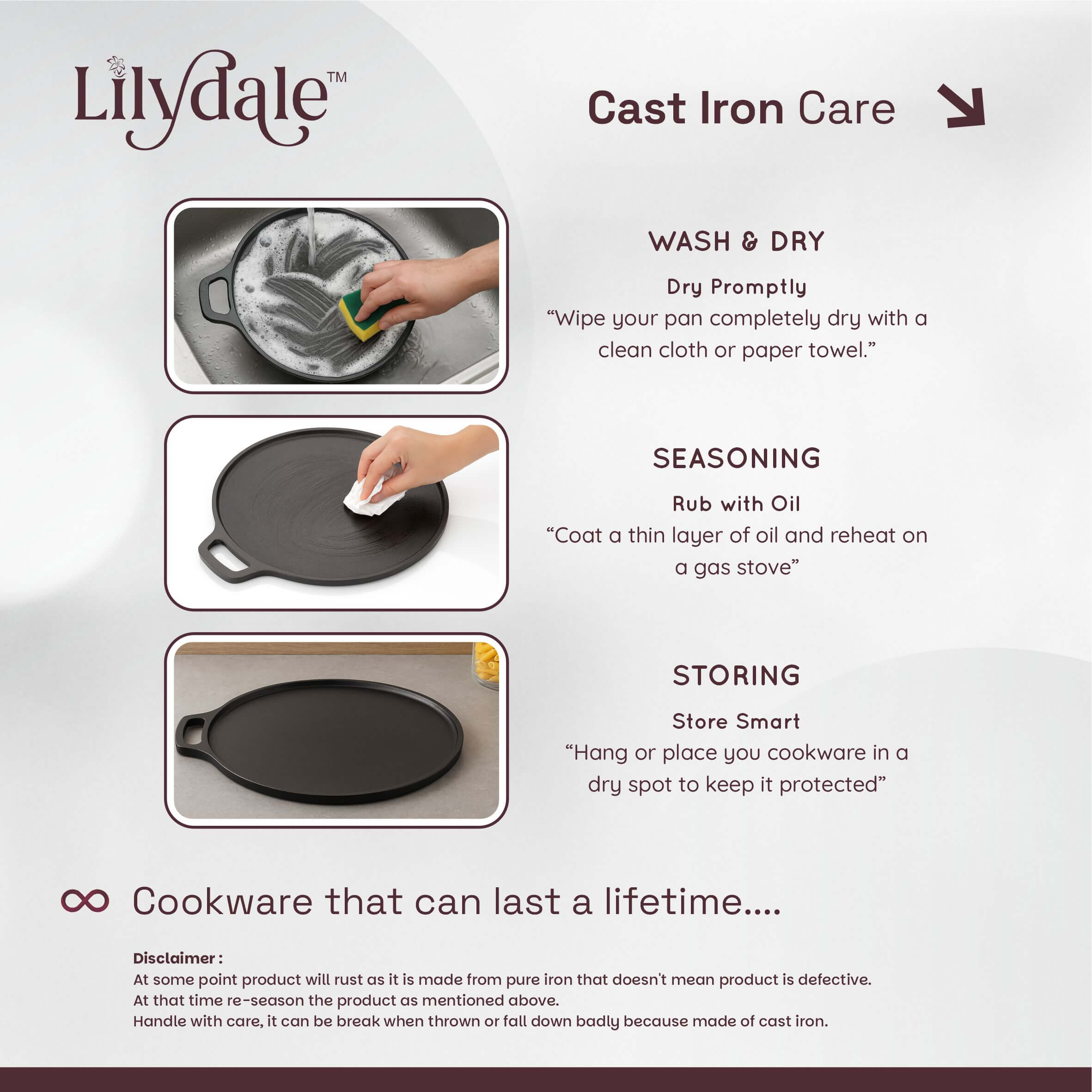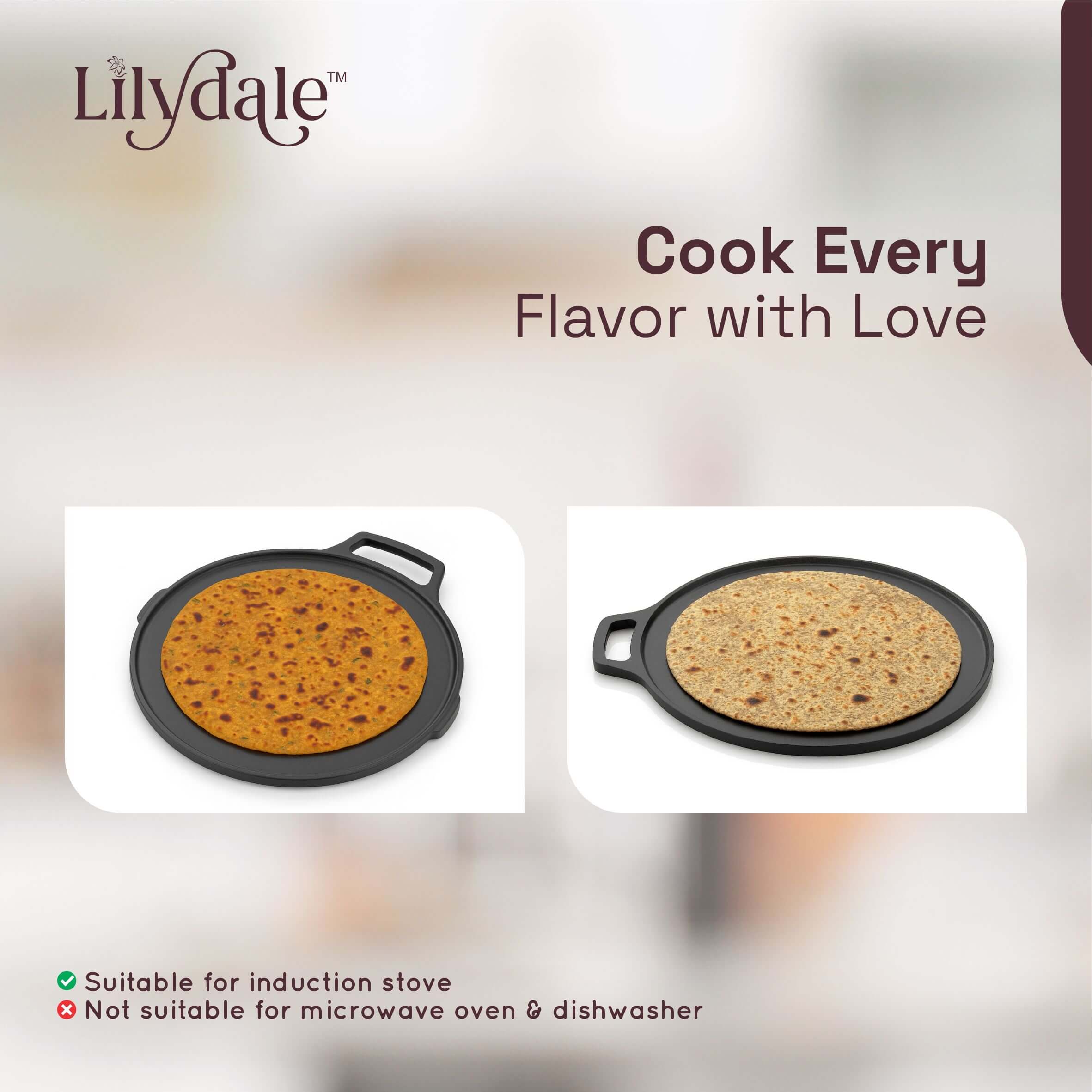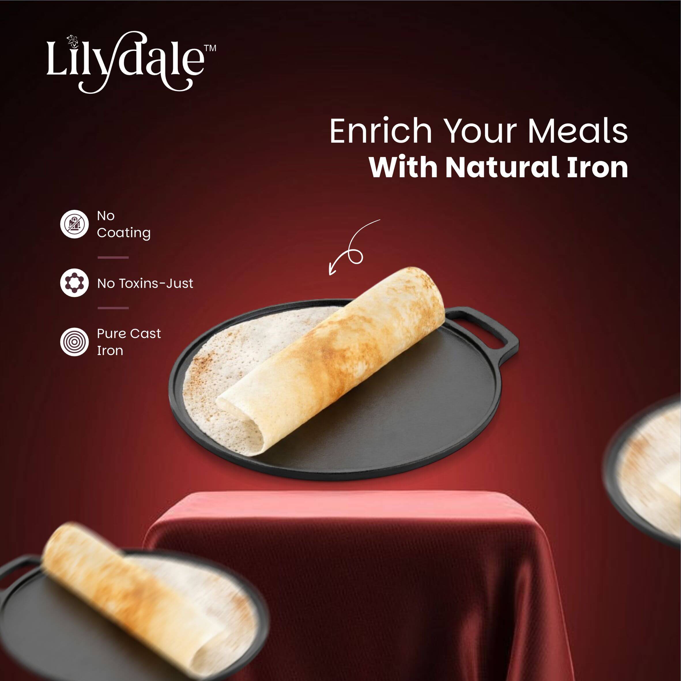 Bring home the authentic taste of Indian cooking with the Pre-Seasoned Multiuse Cast Iron Dosa Tawa (26cm) – your all-in-one solution for making perfect dosas, chapathis, parathas, uttapams, and more. With a wide 10-inch cooking surface and sturdy double handles, this tawa delivers exceptional heat retention and durability while being compatible with both modern and traditional cooktops. Enjoy the timeless flavor, texture, and health benefits of traditional cookware — built to last for generations.