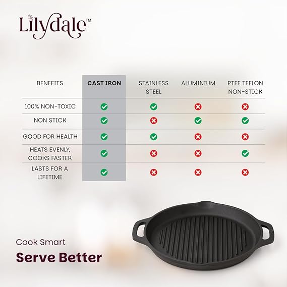 - Nutritional Boost – Cooking in cast iron naturally enriches food with a small amount of dietary iron, adding extra nutrition to your daily meals.