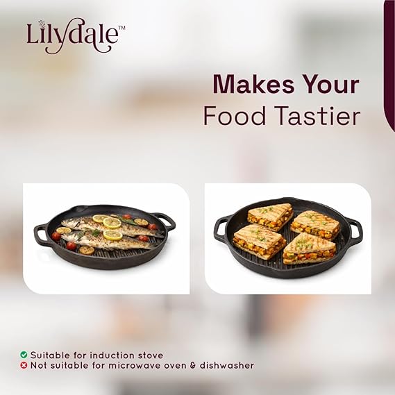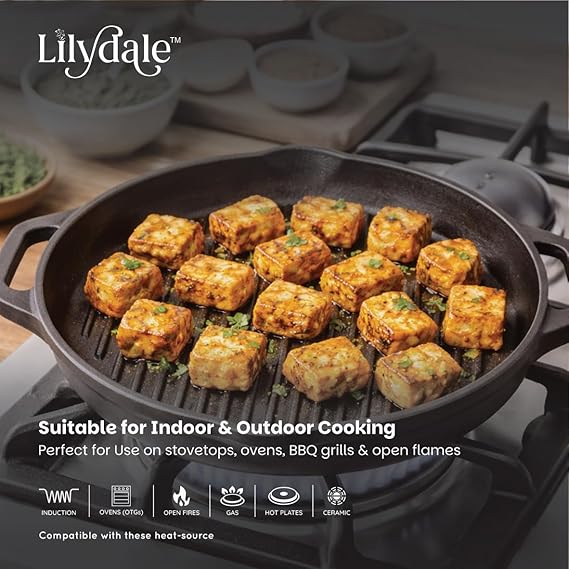 - Premium Cast Iron Build – Made from heavy-duty cast iron, this fry/grill pan ensures long-lasting durability, superior heat retention, and even heat distribution for perfectly cooked meals every time.
