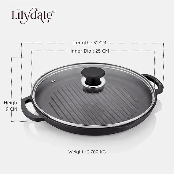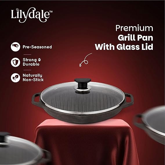 Experience authentic cooking with this Cast Iron Frying and Grilling Pan — designed for durability, performance, and healthy cooking. Measuring 24.5 cm (10"), this pre-seasoned cast iron pan delivers even heat distribution for perfect searing, frying, or grilling every time. With a 2.3L capacity and a sturdy 2.27 kg build, it retains heat beautifully for consistent results on gas, induction, or electric cooktops. The set includes comfortable handles, a tempered glass lid for easy monitoring, and a wooden spatula for safe, scratch-free use. Free from toxins, Teflon, and harmful chemicals, this pan is 100% natural and ready for everyday cooking. Ideal for everything from crispy vegetables to juicy steaks — built to last a lifetime and improve with every use.