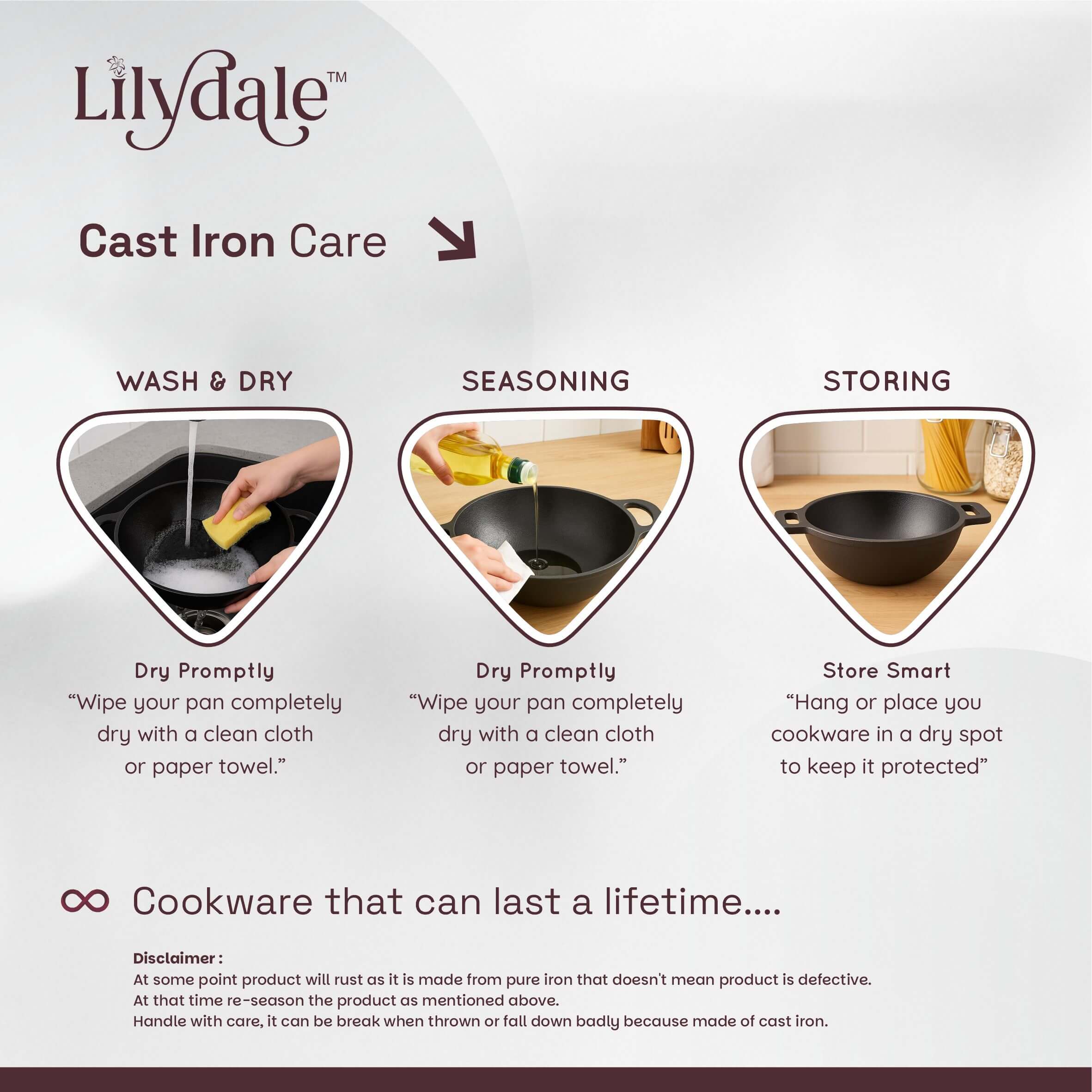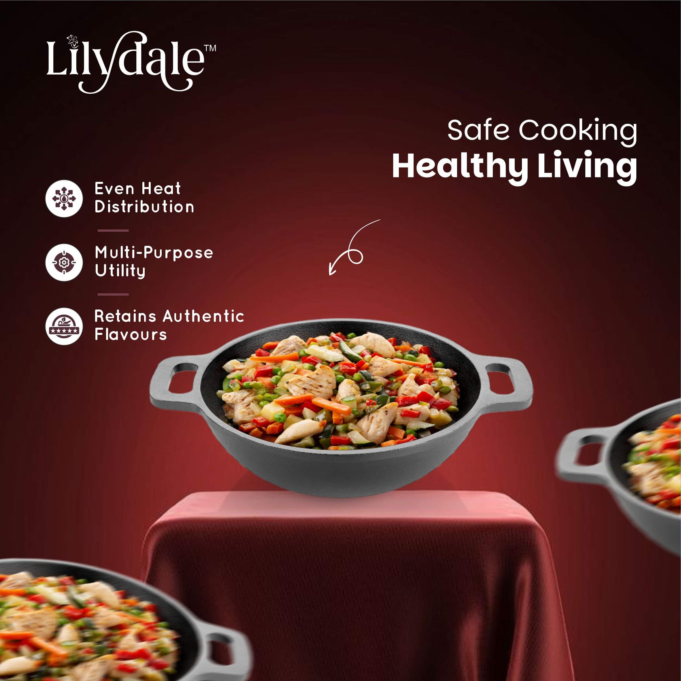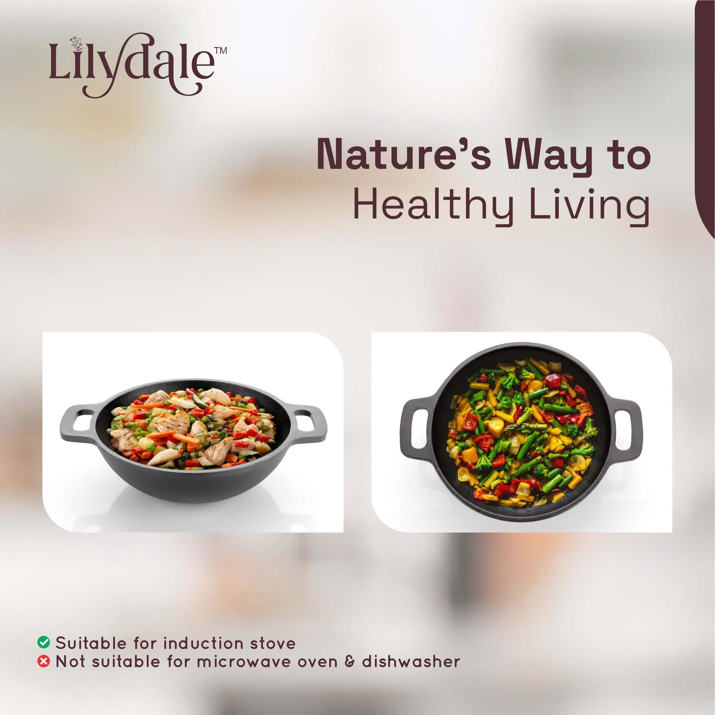 VERSATILE COOKING : Pre-seasoned cast iron kadai perfect for cooking biriyani, gravies, searing, and stewing on both gas and induction cooktops
