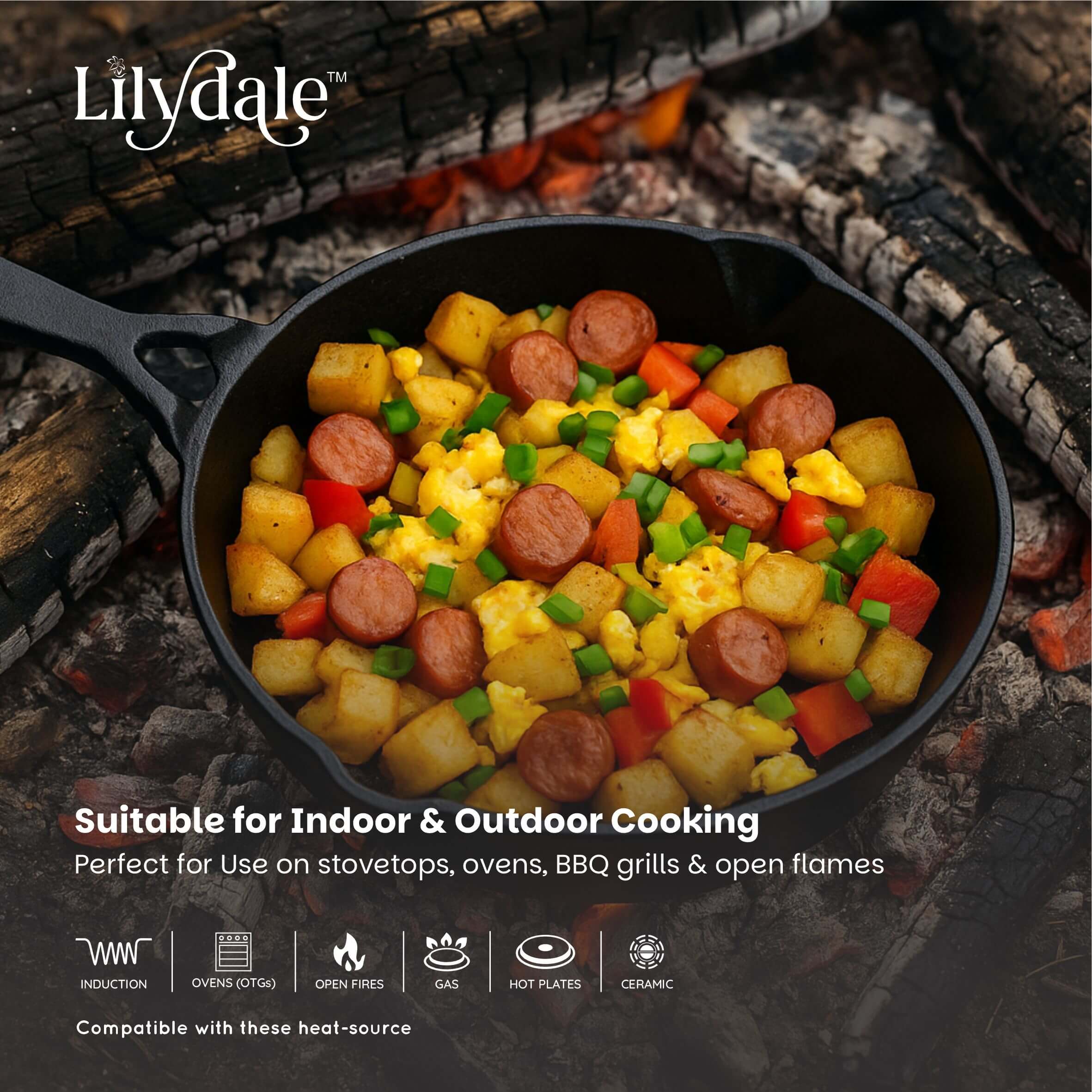- Versatile Cooking Performance Perfect for frying, searing, sautéing, browning, and baking. Works flawlessly on gas, induction, electric, ceramic, halogen, and even campfire heat sources.