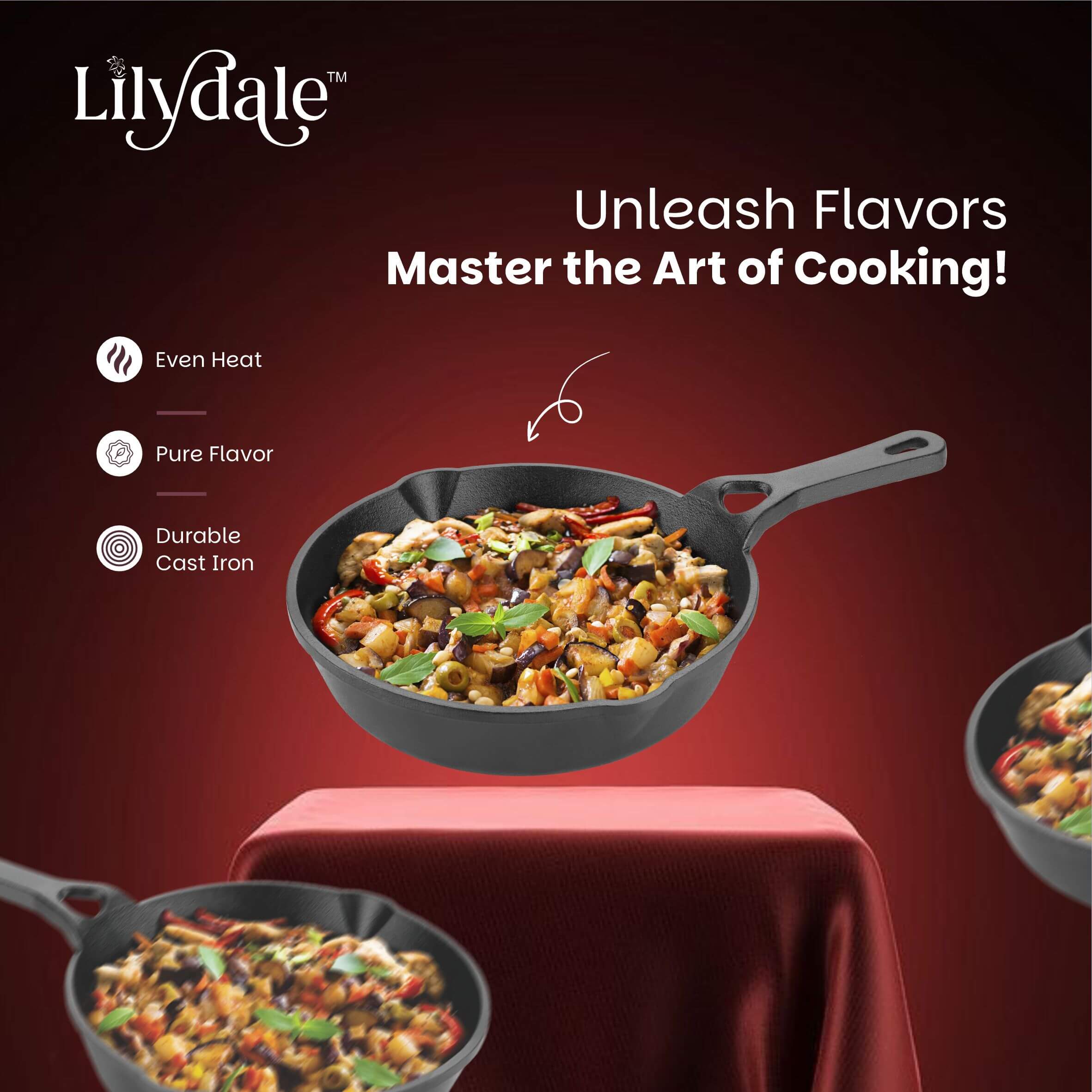 - Premium Pre-Seasoned Cast Iron Construction Made from 100% pure, heavy-duty cast iron that ensures exceptional heat retention and even heat distribution for consistent cooking results every time. Pre-seasoned with natural vegetable oil — no synthetic coatings or chemicals. Ready to use straight out of the box!